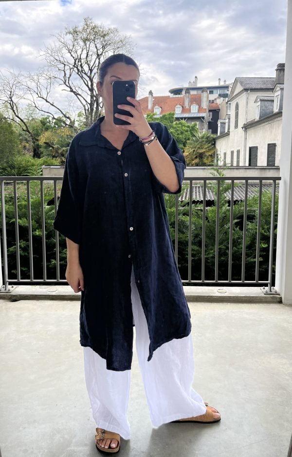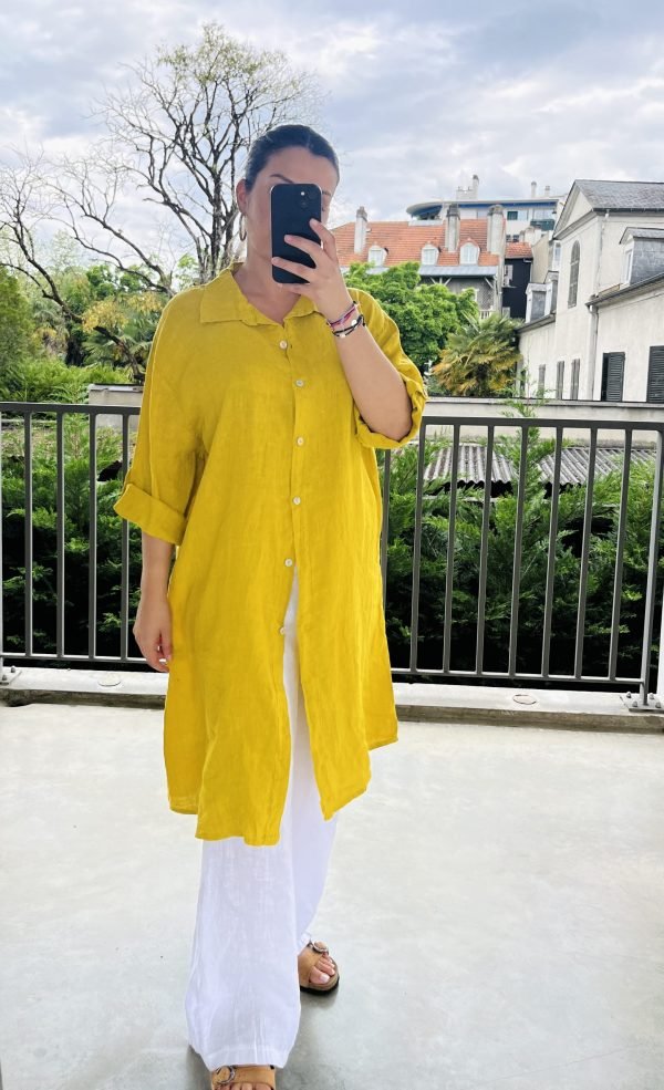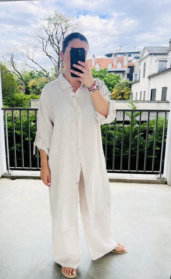 Légère, fluide et élégante, notre tunique longue en lin naturel est une pièce incontournable de votre dressing estival. Confectionnée dans une coupe ample et confortable, elle s’adapte à toutes les morphologies grâce à sa taille unique. À porter ouverte en surchemise, ceinturée pour souligner la taille, ou seule comme une robe légère : elle s’ajuste à vos envies.