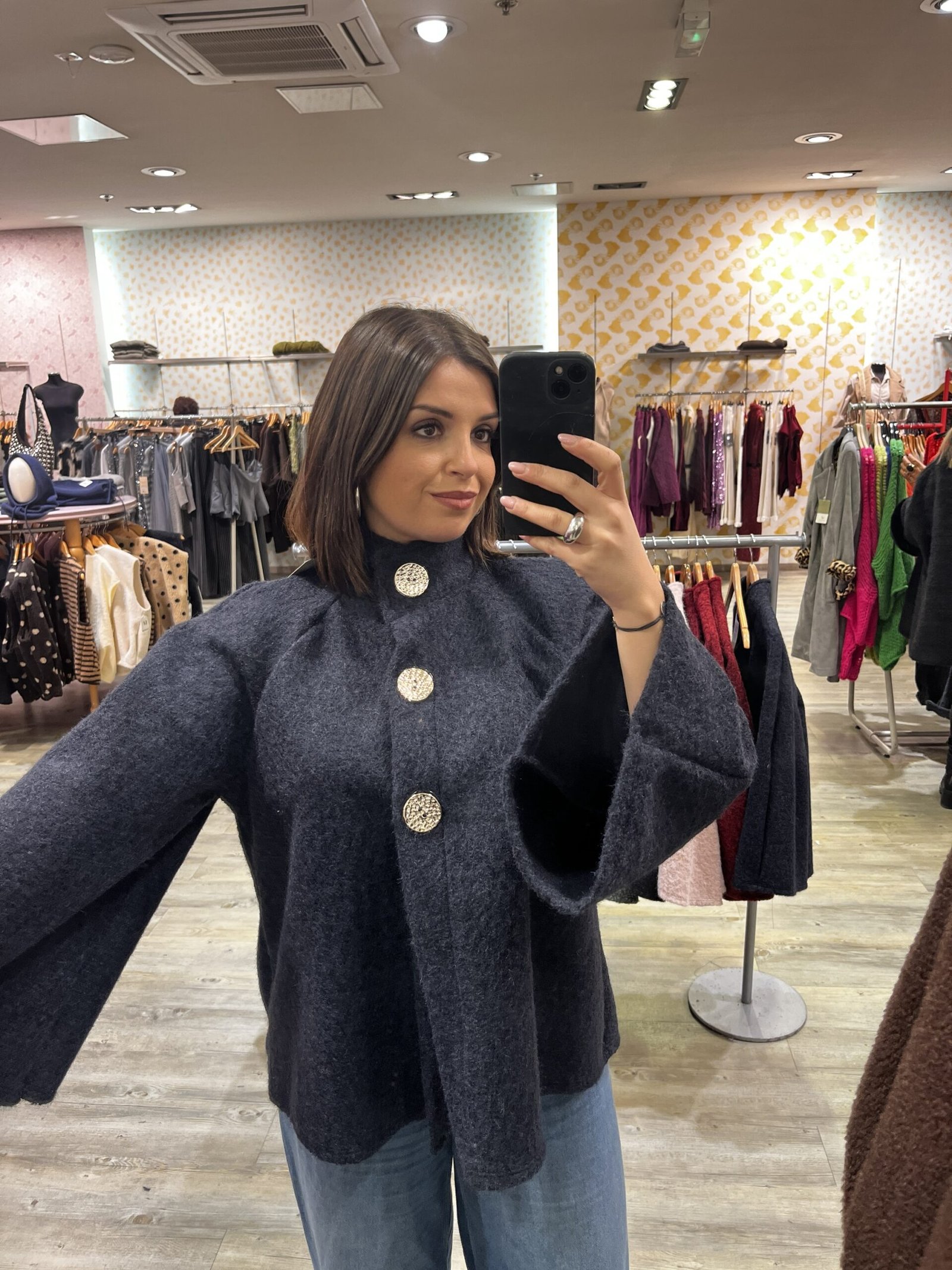 Une pièce d’exception au charme intemporel notre veste MILAN façon laine bouillie séduit par sa coupe cape élégante et ses boutons dorés martelés façon couture. Douce et fluide elle assure à la silhouette un tombé impeccable. grâce à sa composition elle enveloppe la silhouette avec légèreté tout en assurant un tombé impeccable.