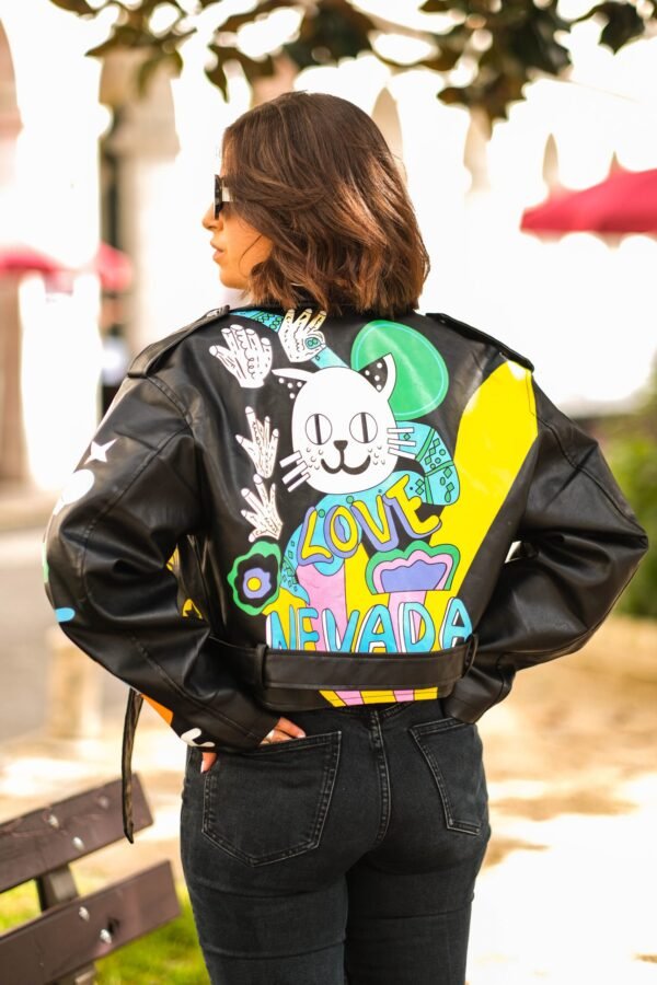 Faites place à l’audace avec notre perfecto POP ART, une pièce forte qui bouscule les codes. Sur fond noir intense, ses motifs ultra colorés inspirés du street art font toute la différence. Un mix parfait entre esprit rebelle et culture graphique.